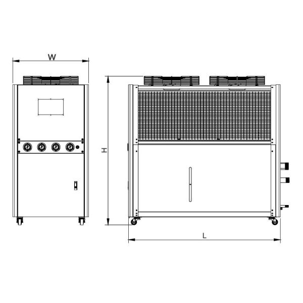Air Chillers adopt fin condensers (without need of cooling water) with the features of rapid heat transmission and excellent heat dispersion. This series can be afforded cooling ranges from 5~35℃, even lower to 3℃ (temperature controlled accuracy at ±1℃). The compressors' power range from 3HP~50HP and cooling capacities range from 7800~ 128570 Kcal/hr.